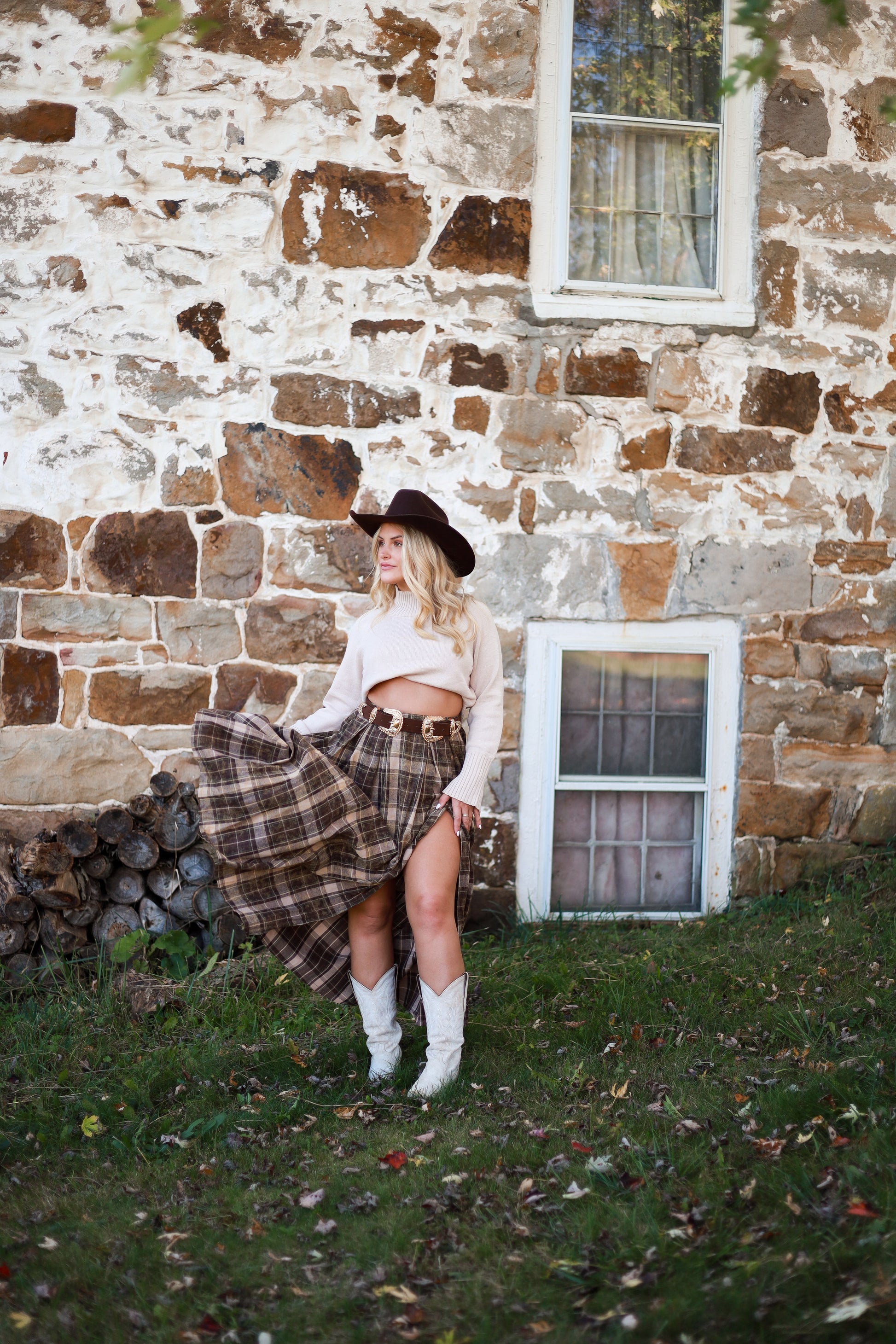 Made for cozy countryside days and timeless moments — from strolling through markets and sipping coffee at the café to gathering around autumn tables and holiday escapes. Pair it with a knit sweater, tall boots, or a cropped jacket for effortless rustic charm.