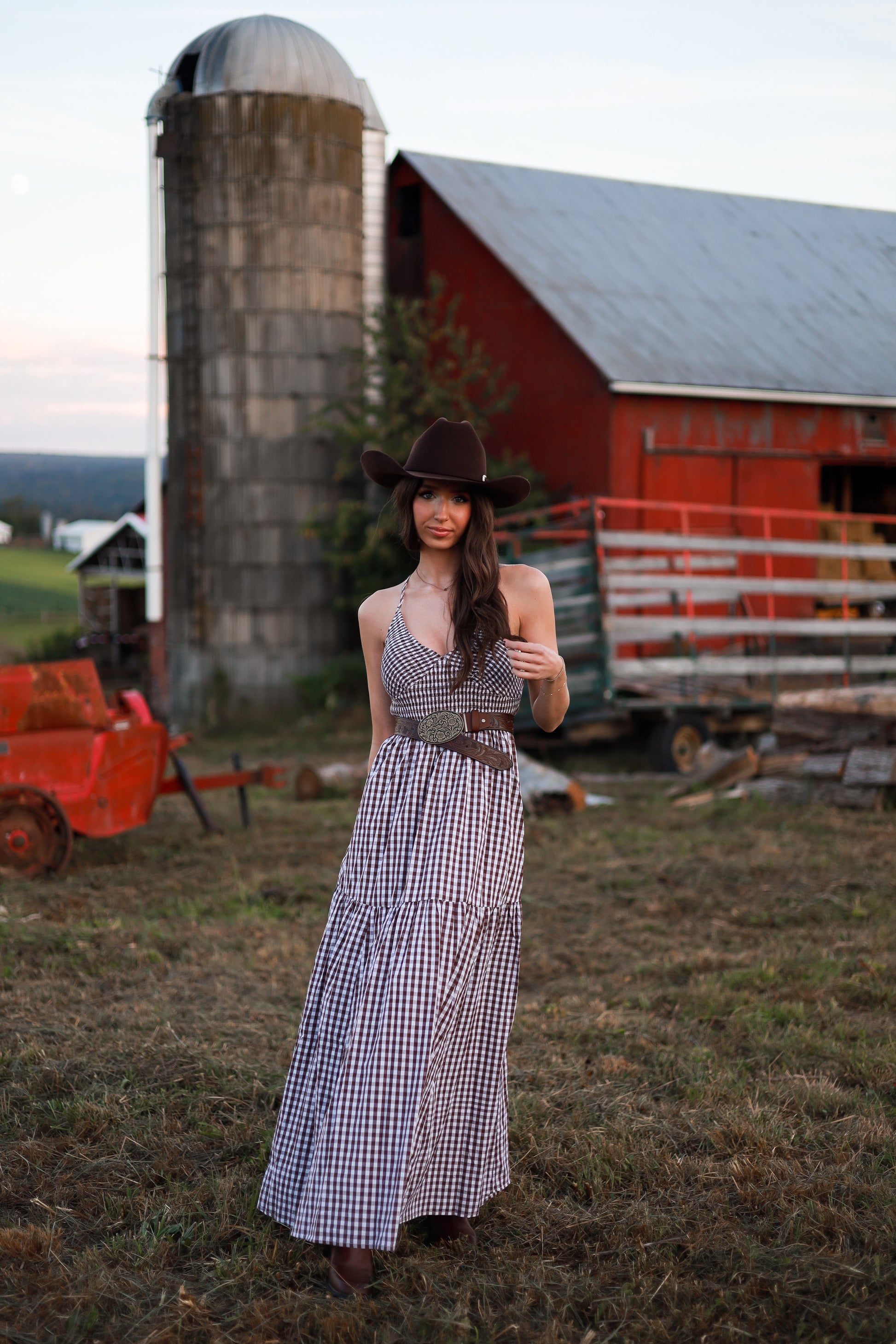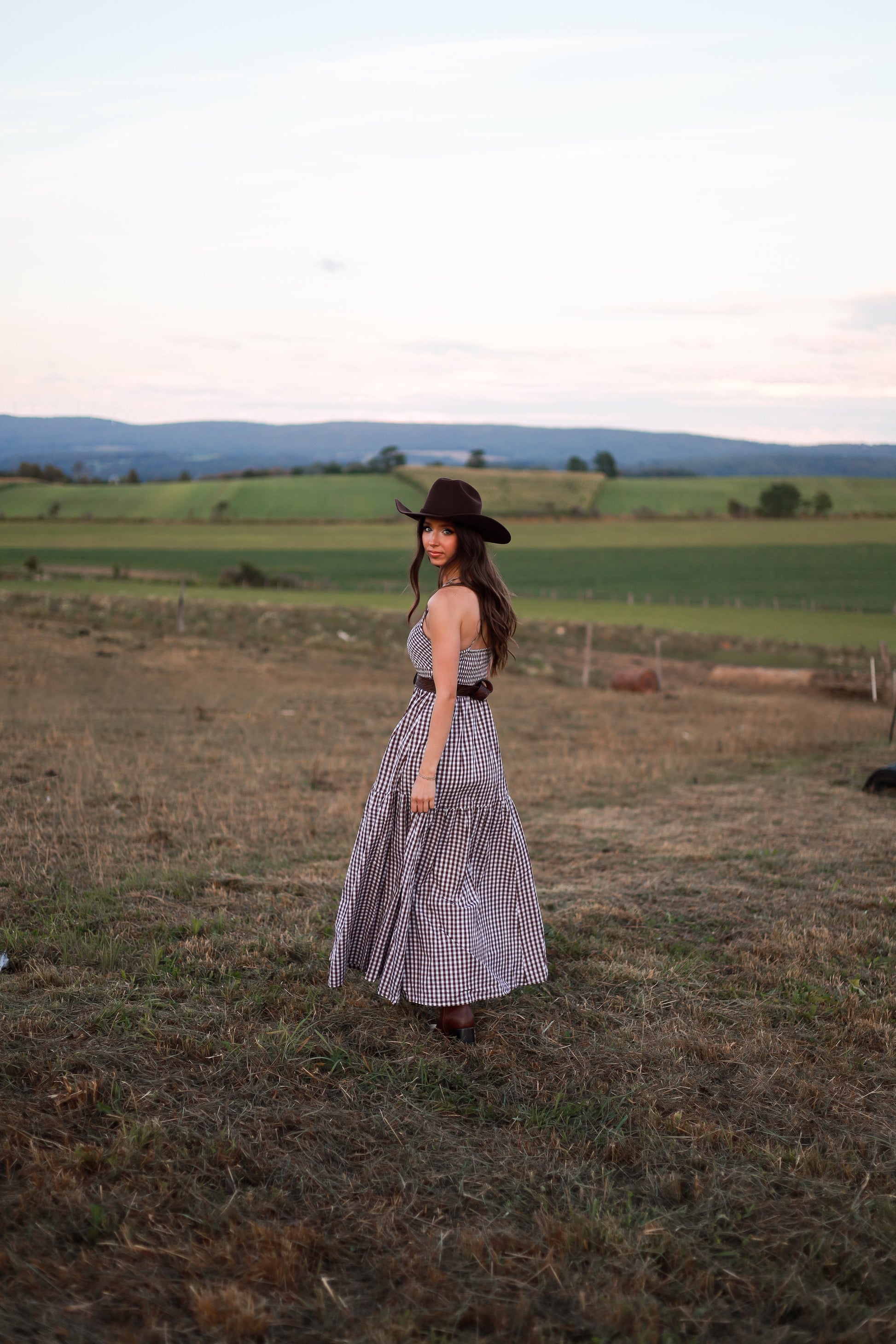 Jackson Gingham Maxi Dress - Brown