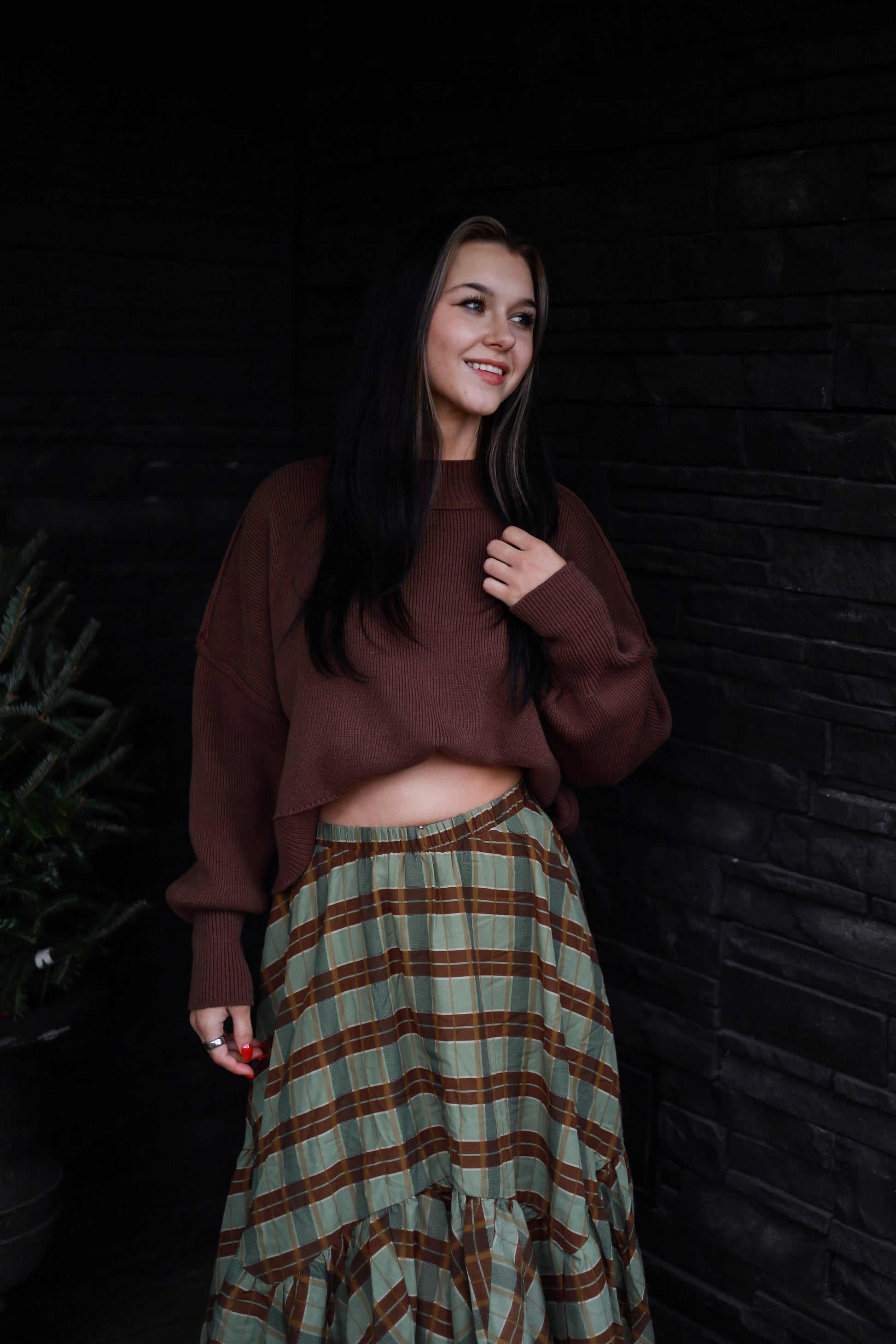 This skirt was made for afternoons strolling along open country paths. Its flowy handkerchief hem and charming plaid pattern bring an effortless blend of Western character and cottagecore sweetness. Pair it with a soft knit, a puff-sleeve blouse, or a simple tee and boots for a look that feels both romantic and easygoing.