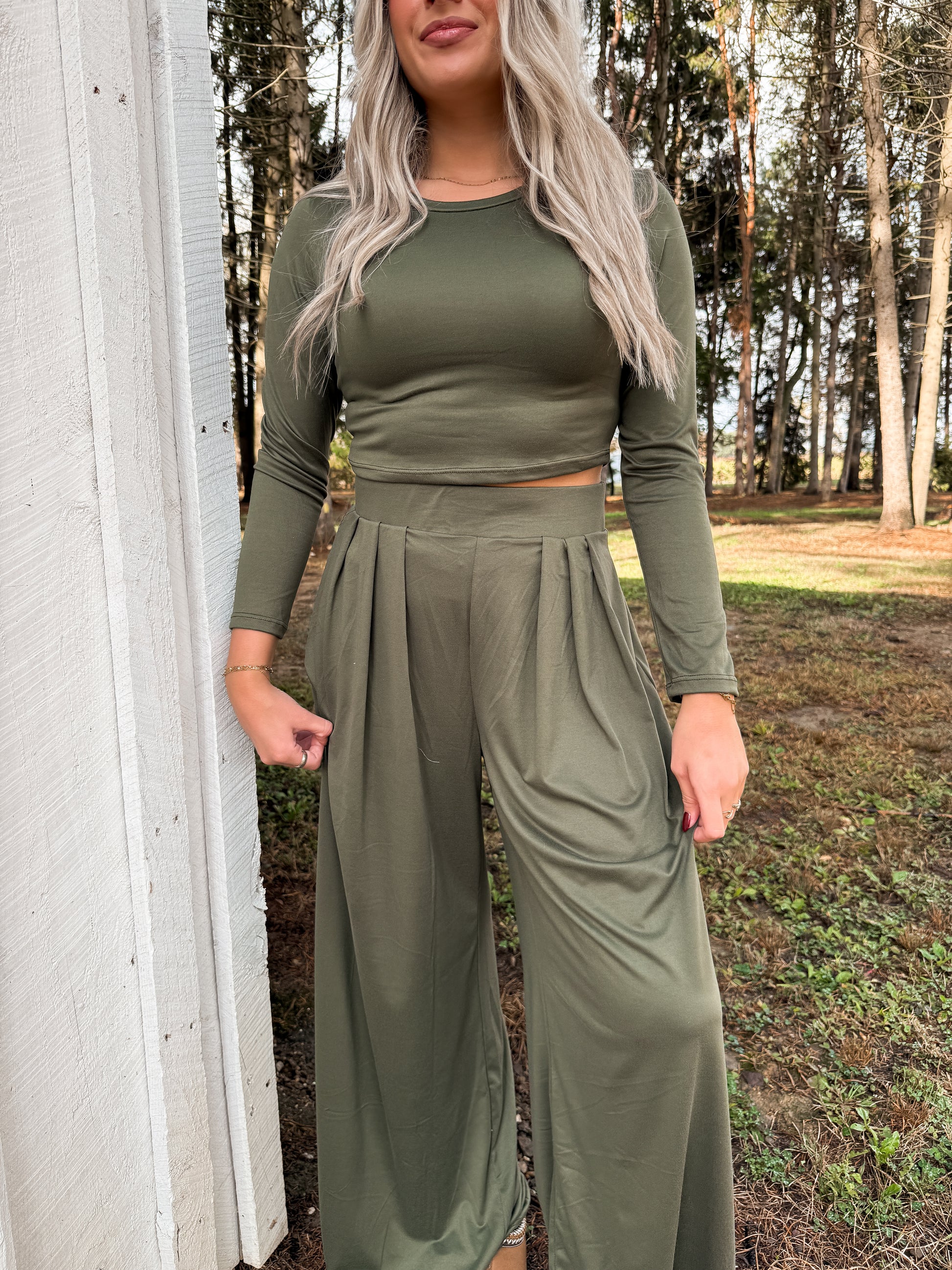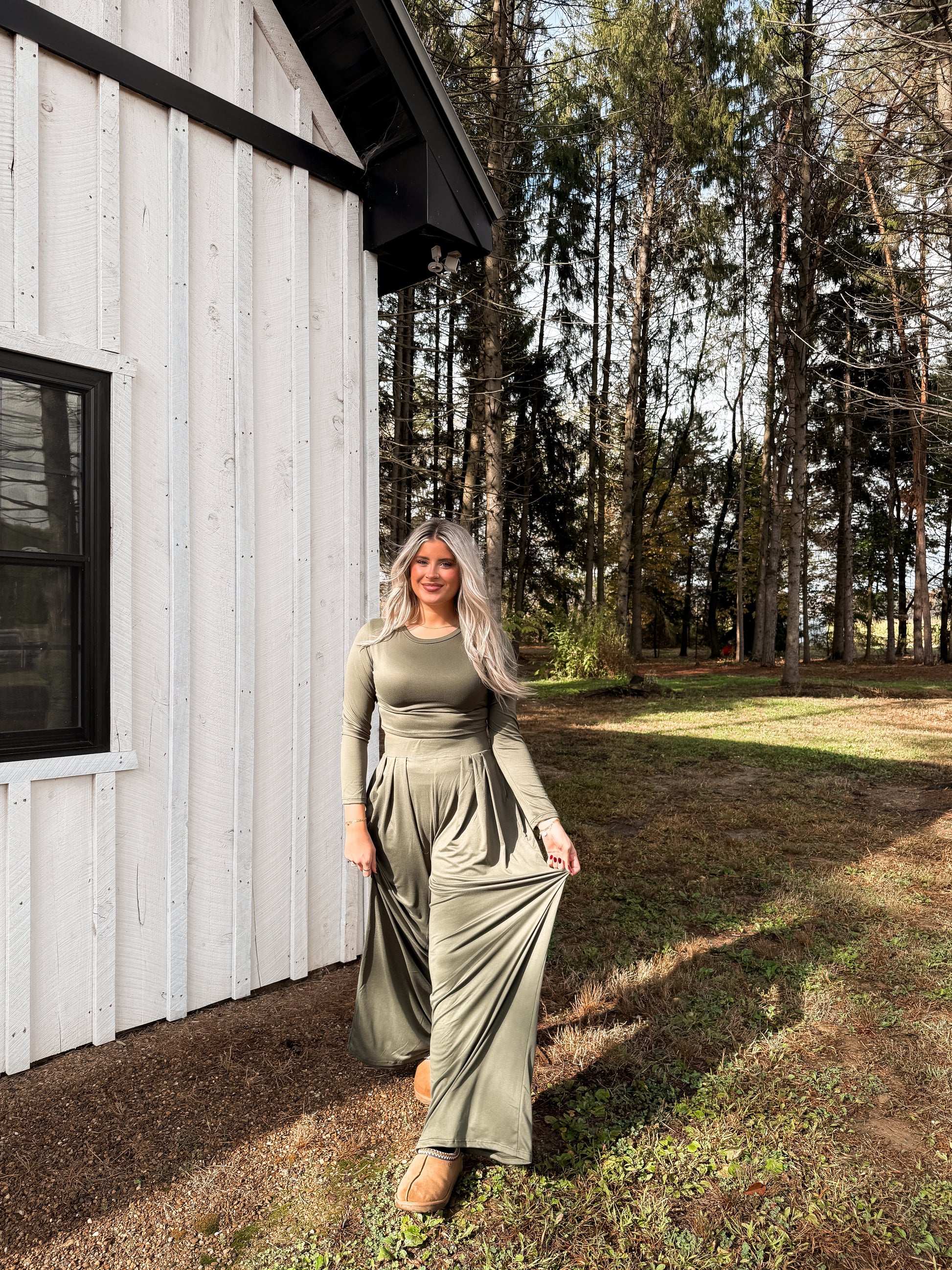 Sandstone Lounge Set — Matcha Wide Leg Lounge