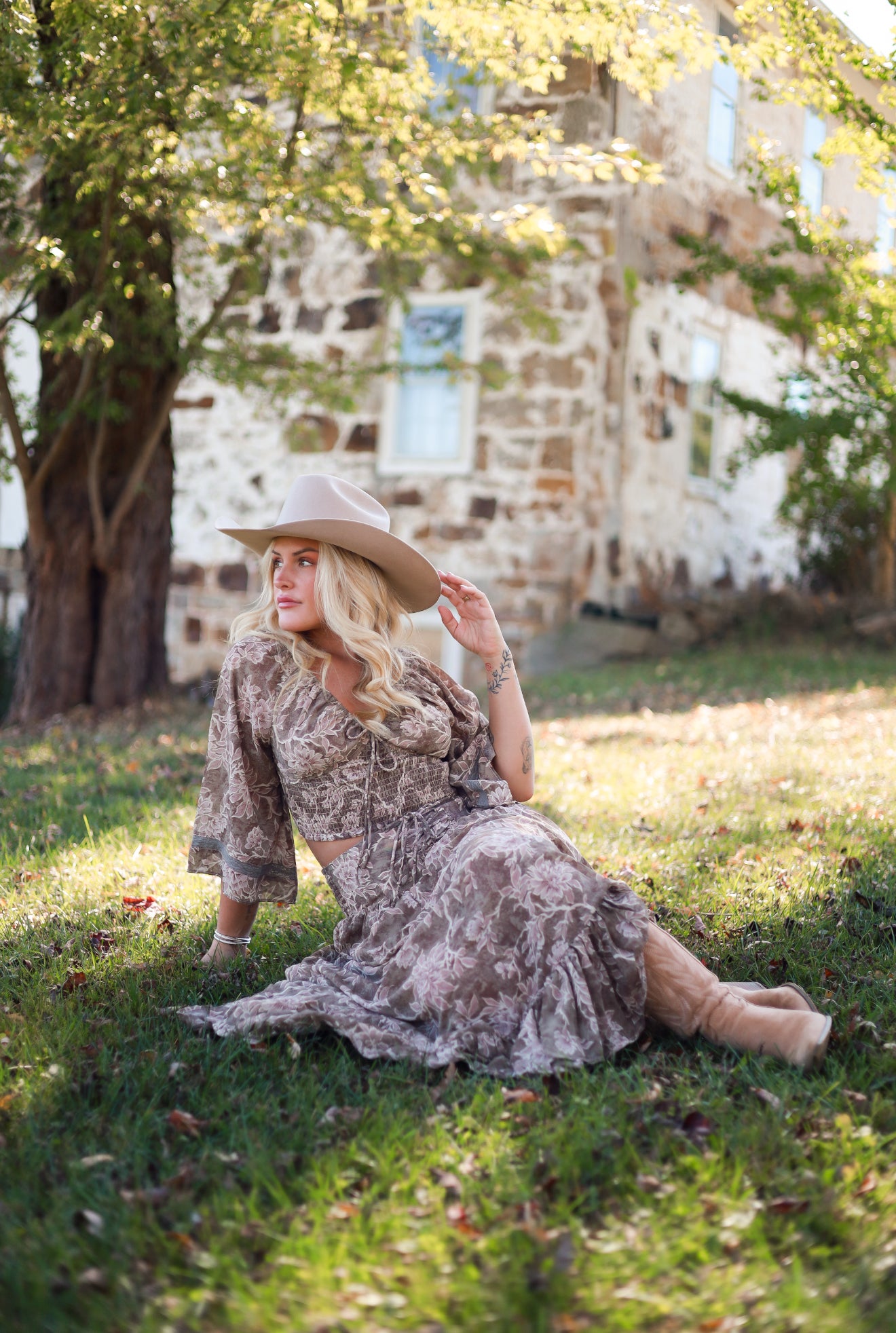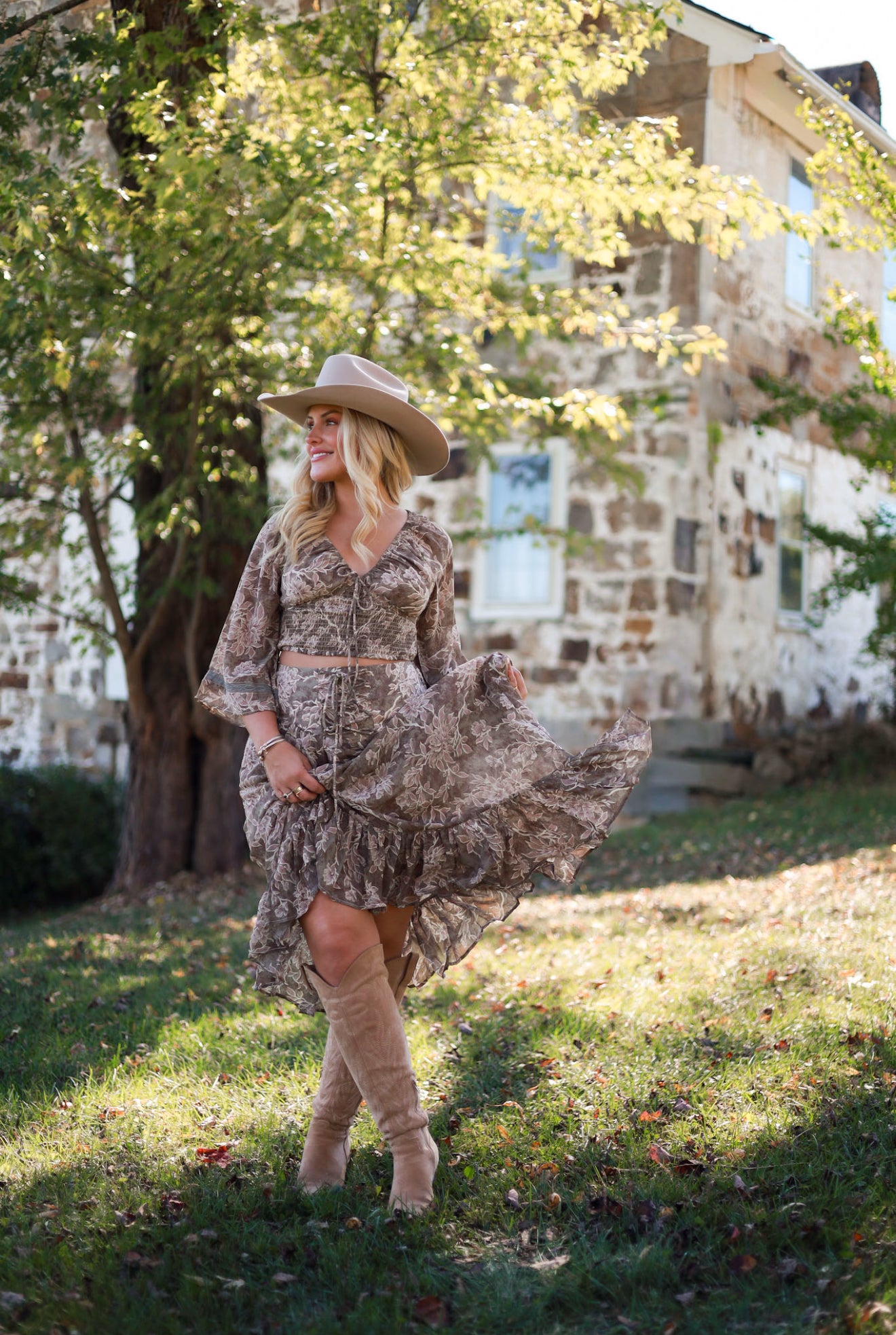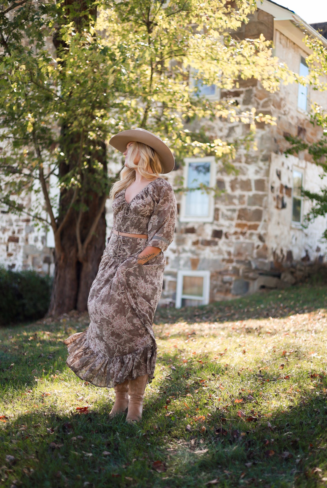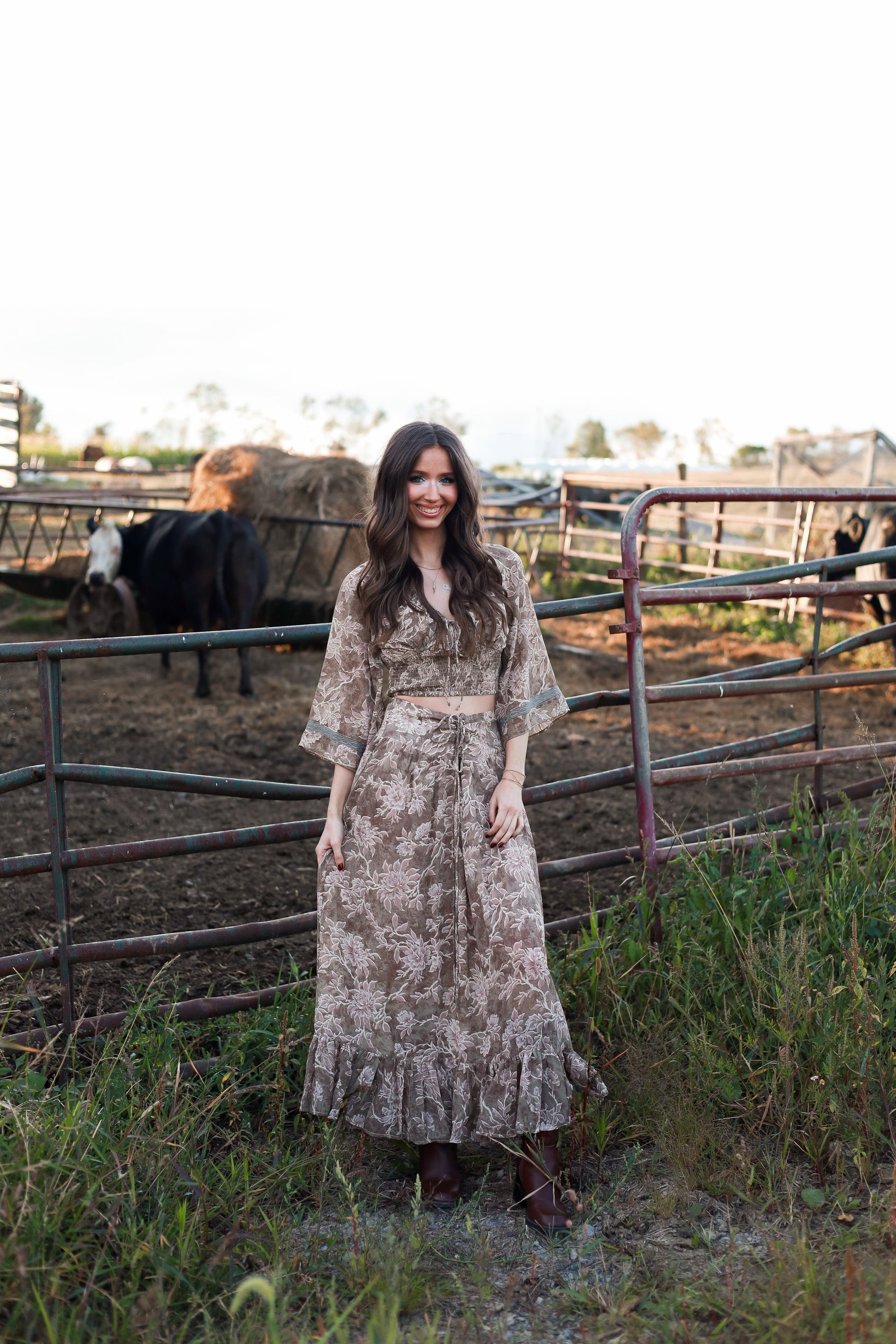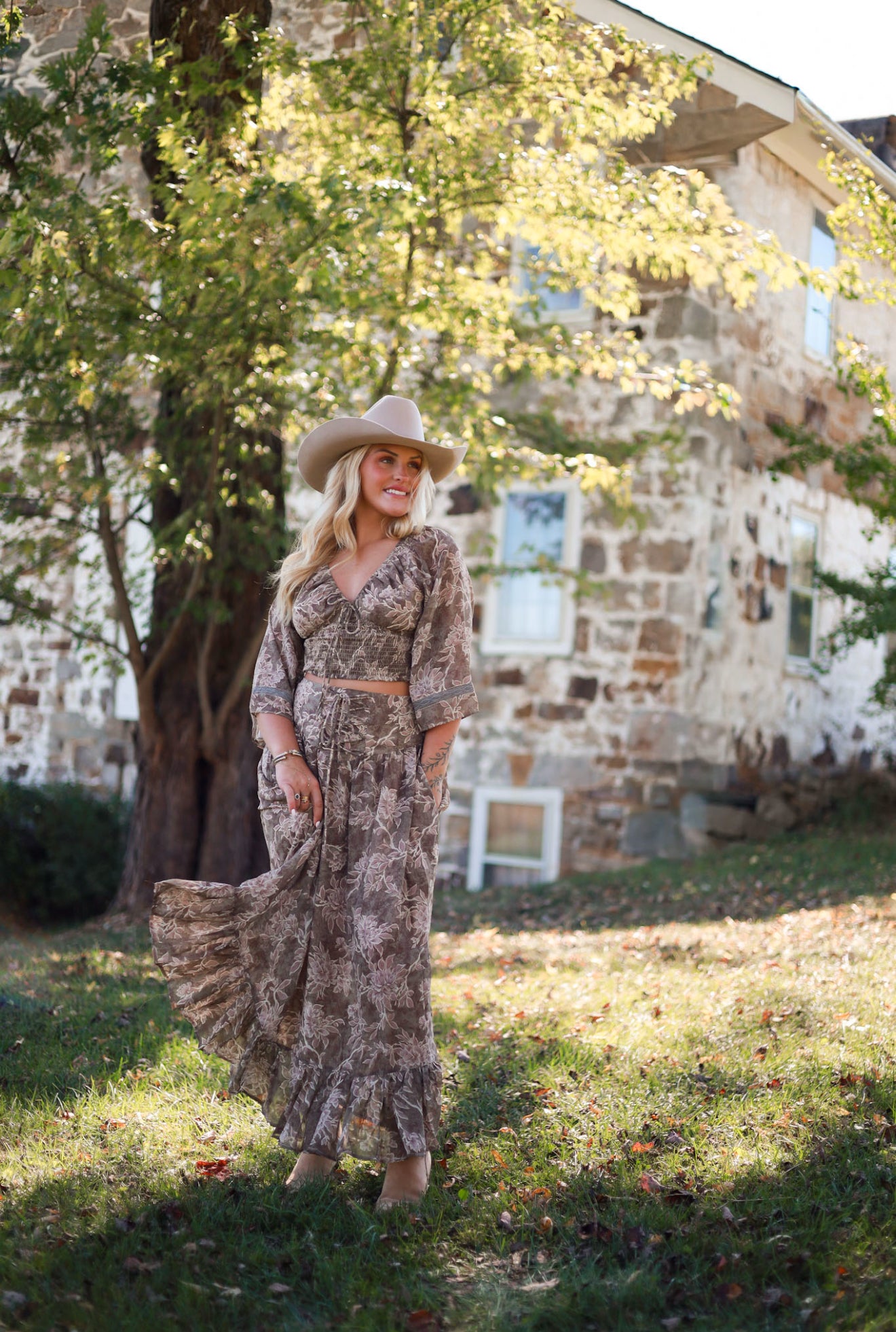 Thistlewood Maxi Skirt — Cream & Taupe Western Boho Skirt